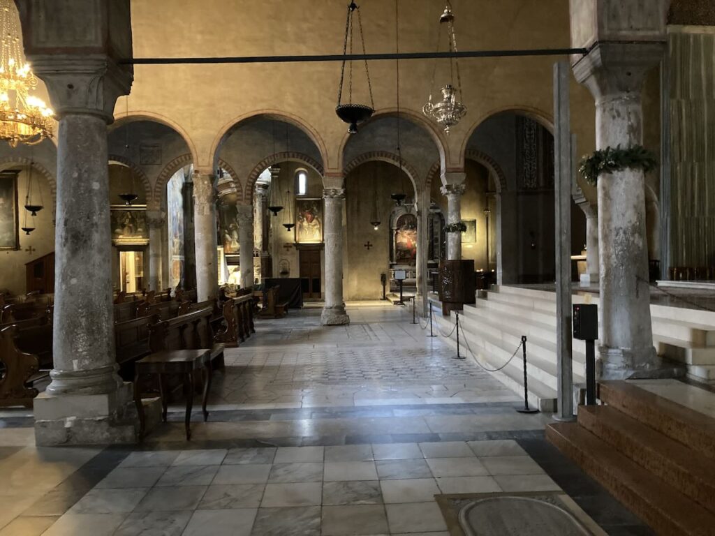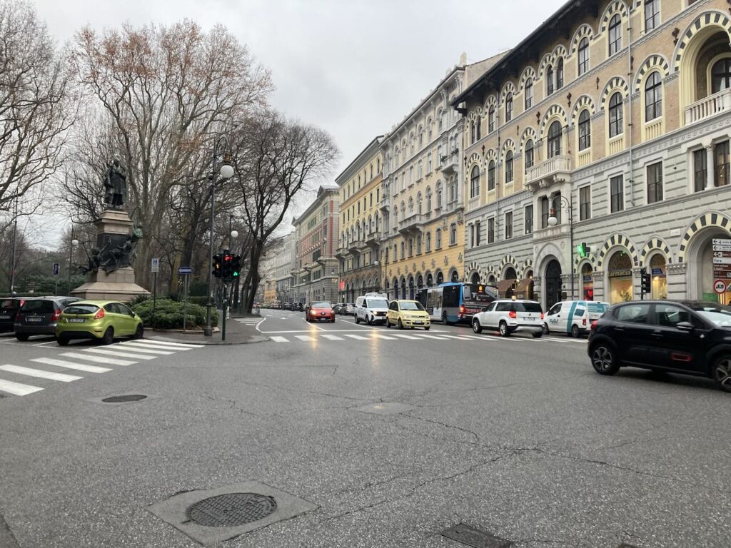 トリエステ二日目、街の中心地を歩くことにする。海に山が迫った地形は少し歩くだけで変化に富んだ風景を楽しむことができる。海岸沿いにはヨーロッパ最大の広場、イタリア統一広場がある。近くの丘にはサンジェスト大聖堂のあるサンジェスト城から街の風景を楽しむこともできる。トリエステは観光地ではないがイタリアらしいアーケードのある大通り、旧市街地のまちなみ、そして運河があり、面白い考古学博物館を楽しむこともできる。派手さはないが街の風景を楽しむには落ち着いたいい街だった。