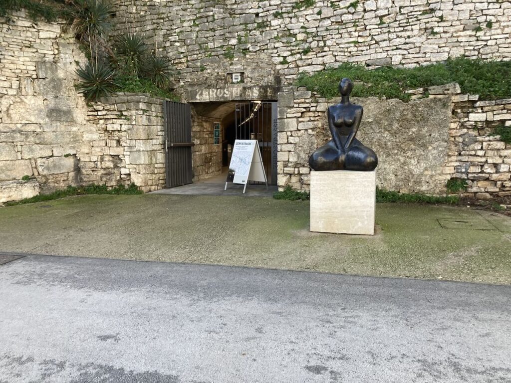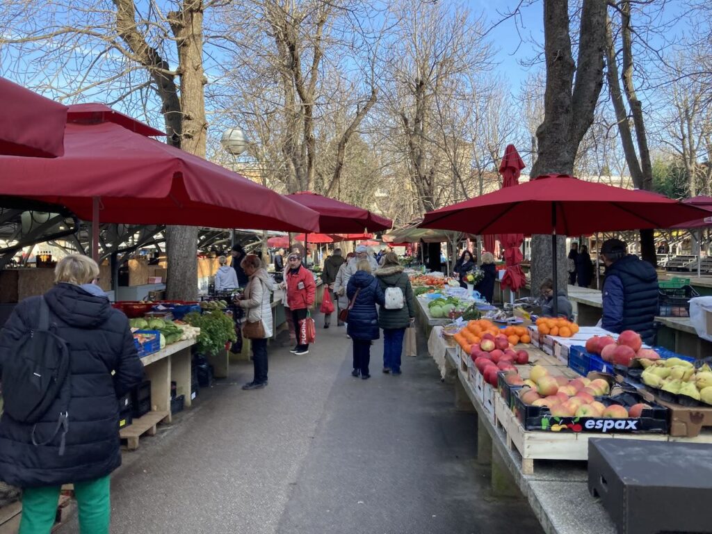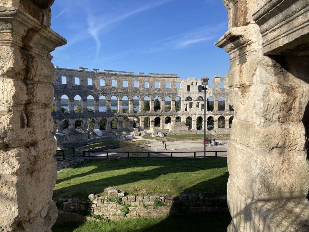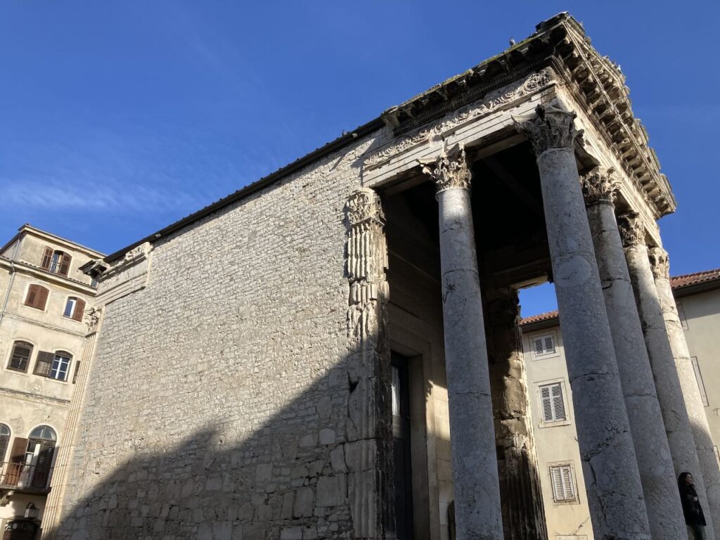 プーラ二日目、明日は日曜日で店が休みなので午前中にカーフランドで買い物をしてから街の中心地を歩くことにする。カーフランドはバスターミナルを超えた郊外にあるので途中の風景は日本の郊外住宅地と似ていた。高層住宅中心で大きな緑地を残す配置計画。買い物をアパートメントに置いて街の中心地に向かう。幹線道路から市場ゾーンに入る。少し遅い時間だったが市場はまだにぎやかだ。プーラの市場の建屋は中も外も美しい建築だ。それに場外の建物や露店が出ていていい空間を作っている。
