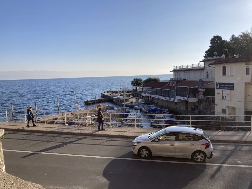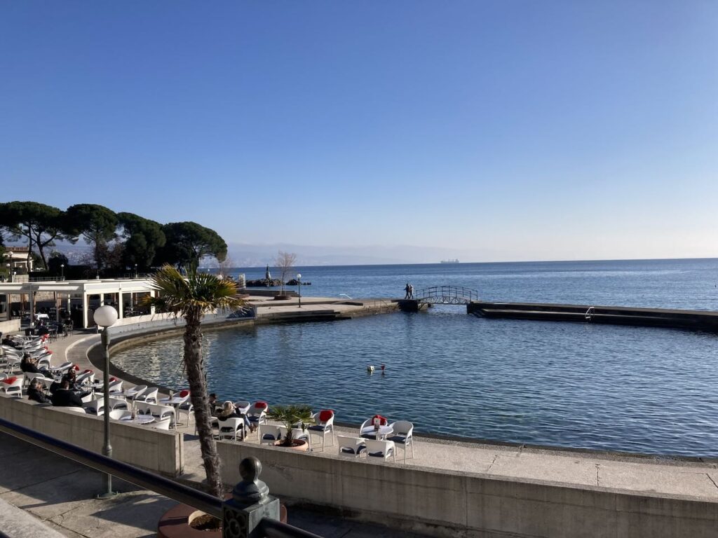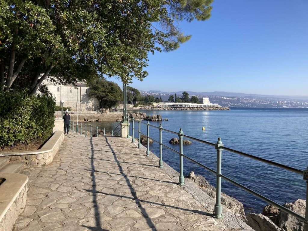 海辺の遊歩道が続く ヴォロスコからバスでリエカに(バスの時間になんとか間に合う)