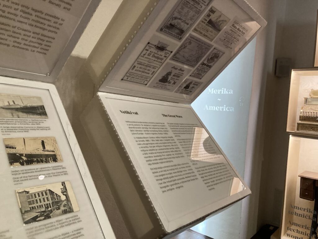 今回の旅行の最終日はリエカ1日グランドツアーでロブラン、オパティアの海岸散歩からリエカのシティミュージアム砂糖宮殿へ行くことにした。シティミュージアムの展示はすばらしかった。「ミュージアムは市民教育のためにあるのだ」そんな声が聞こえてくる。実際に子供たちがミュージアムの中をノートを持って歩き回っていた。先生もいて子供たちと話していた。クロアチアの第2次世界大戦以降の成功の歴史を子供達に伝えるかのように展示物もしっかりしていた。砂糖、製紙、魚雷、製鉄、造船と近代産業の発達とクロアチアの発展を明確に主張した展示だった。(魚雷の展示もインパクトがあった)